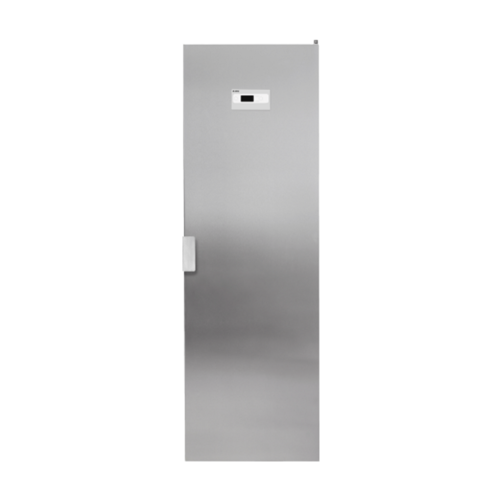 Rymligt och ventilerat torkskåp i rostfritt stål med 16 meter torkyta och åtta program – för skonsam och effektiv torkning av kläder, skor och textilier.