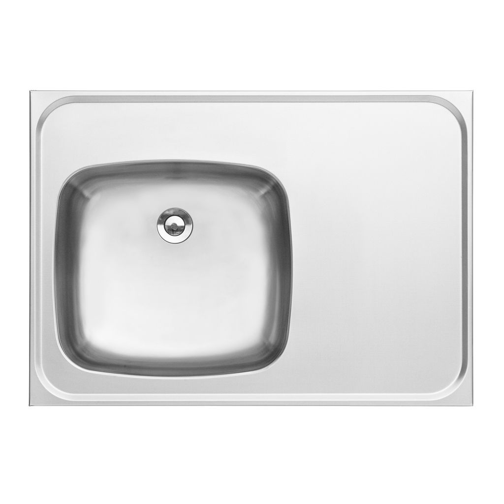 Fötterna är ställbara i höjdled, vilket gör att bänken kan justeras efter ojämna golv. Disklådan är rymlig och djup, vilket ger gott om plats för både grovrengöring och sköljning. Tvättbänken levereras komplett med trådkorgar, pluggventil och utloppsrör – och kan beställas med eller utan kranhål för att passa olika installationsbehov.