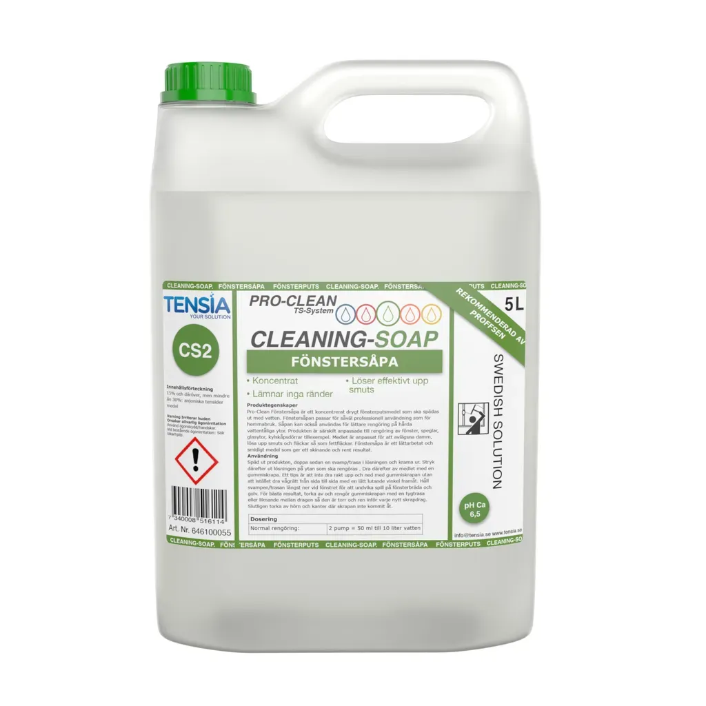 Pro-Cleans Fönstersåpa är ett koncentrerat och mångsidigt rengöringsmedel utvecklat för effektiv och skonsam rengöring av fönster. Produkten löser upp smuts, damm och fettfläckar och efterlämnar ett skinande rent resultat utan ränder. Den är idealisk både för professionell användning och för den som vill uppnå ett professionellt resultat i hemmet.