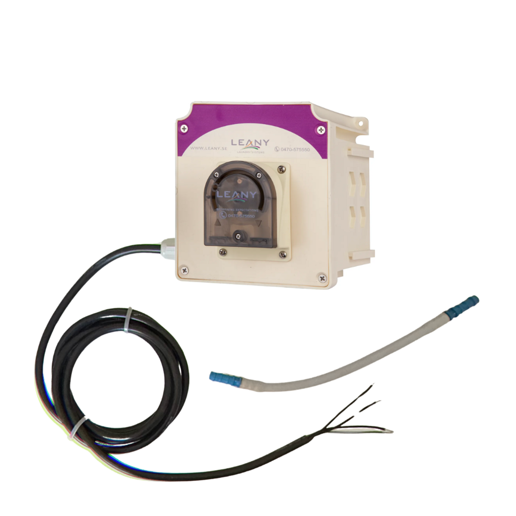 Leany No Controller är en doseringspump särskilt utvecklad för tvättmaskiner som själva styr doseringen via programmerbara tider. Lösningen är optimal för moderna maskiner där doseringen hanteras direkt från maskinens styrsystem utan behov av separat controller.