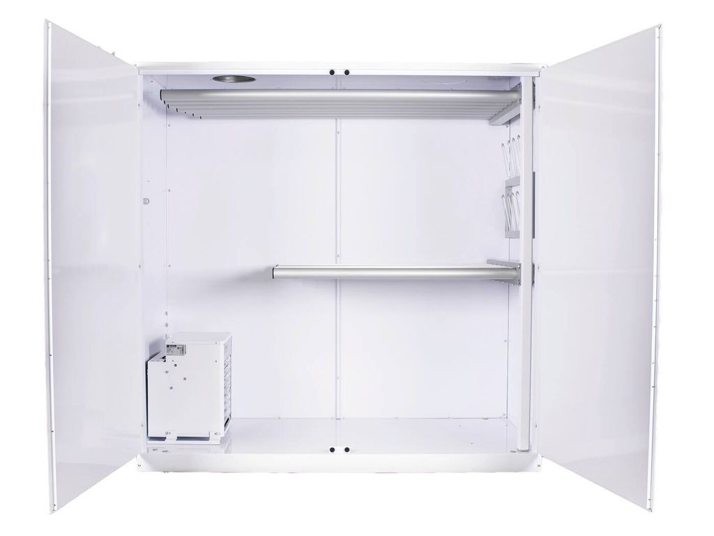 Skåpet har en handikappanpassad manöverpanel för enkel användning och passar särskilt bra i miljöer där tillgänglighet och ergonomi är viktigt. Frånluftsdelen är placerad på vänster sida.