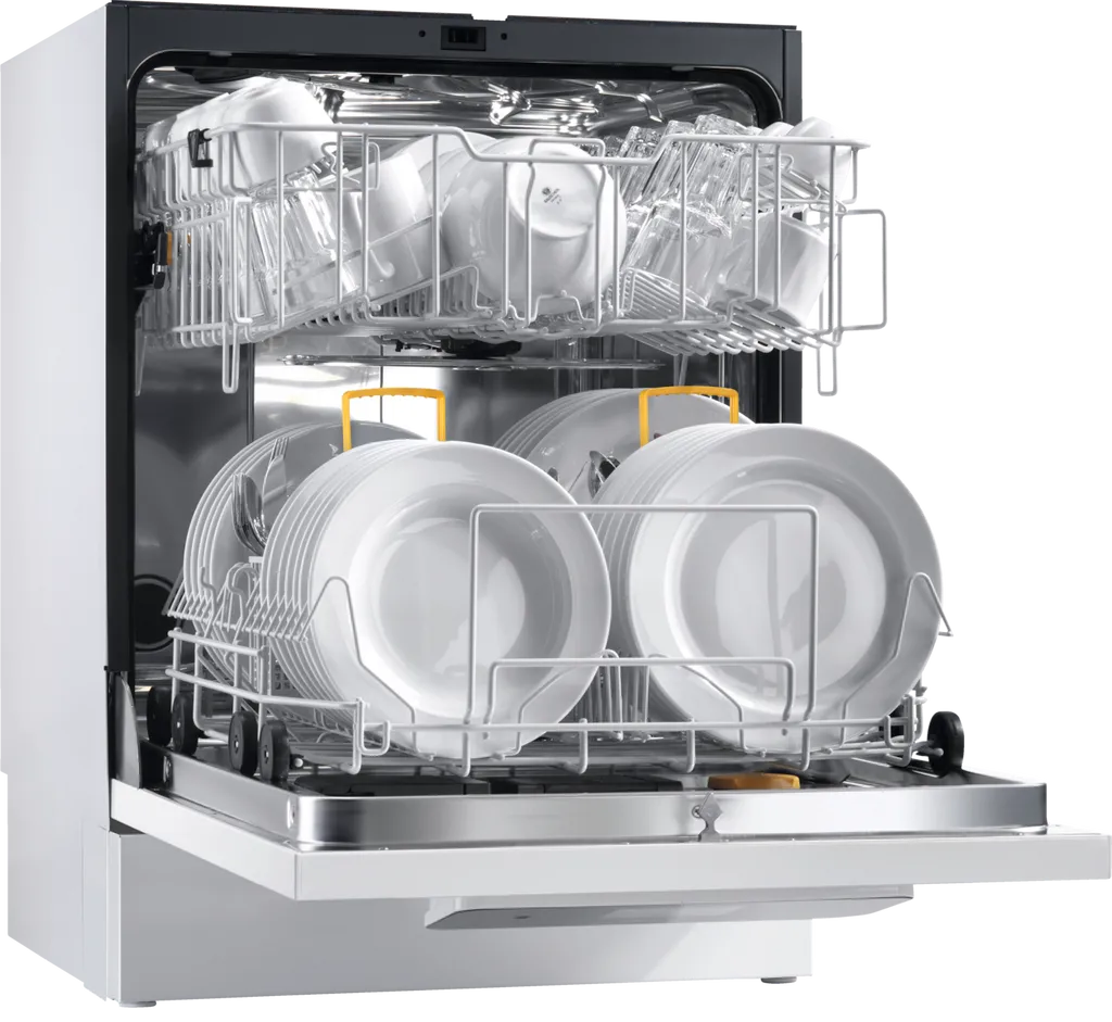 Underbyggd färskvattendiskmaskin med automatisk dosering, två diskplan och M Touch-display. Perfekt för bar, restaurang, hotell eller gemensamma kök.