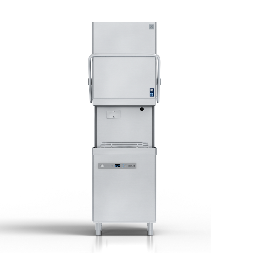 Med fyra förinställda program och låg ljudnivå på endast 59 dB(A) hanterar D2 Base allt från glas och tallrikar till bestick och redskap. Modellen är utrustad med värme- och ljudisolerad huv, doseringspumpar, EN1717-skydd och IPX5-klassning som standard. Ett smart och hållbart val för restauranger, caféer och storkök.