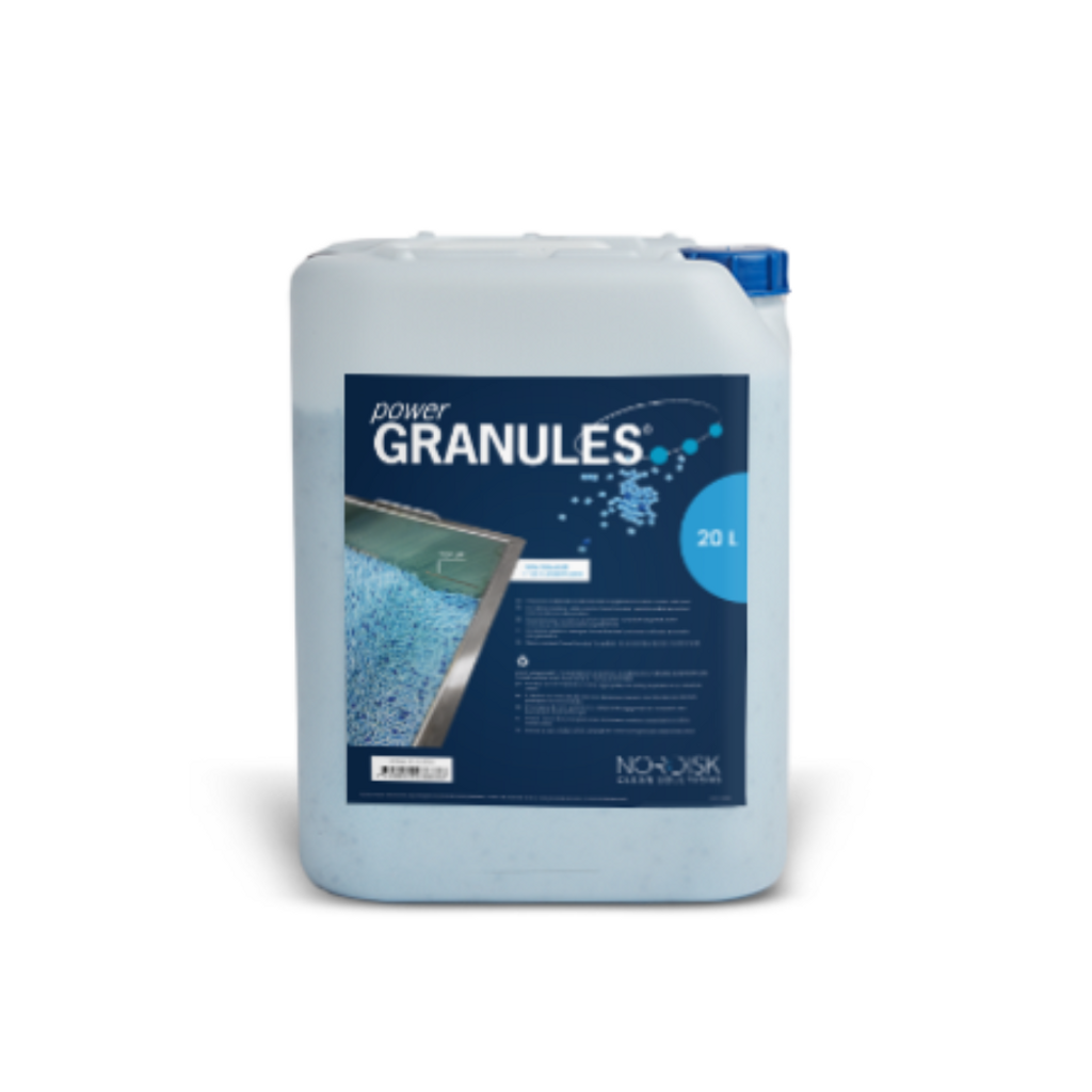 PowerGranules Original är specialutvecklade granuler för Nor:disks grovdiskmaskiner och garanterar ett enastående diskresultat varje gång. Granulerna är formade och avvägda för att ge maximal rengöringseffekt utan att skada vare sig diskgods eller maskin. Resultatet är skinande rena kantiner, kastruller och bleck – utan fördisk eller manuell skrubbning.