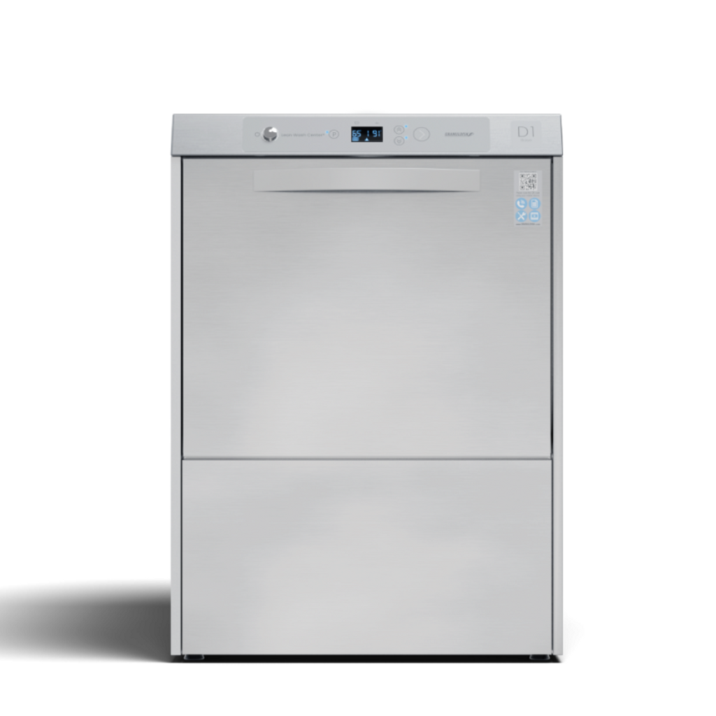 Kompakt underbänkdiskmaskin med låg förbrukning och hög prestanda. Finns som D1 Base, D1 Master och D1 Master Glass – anpassad för alla behov.