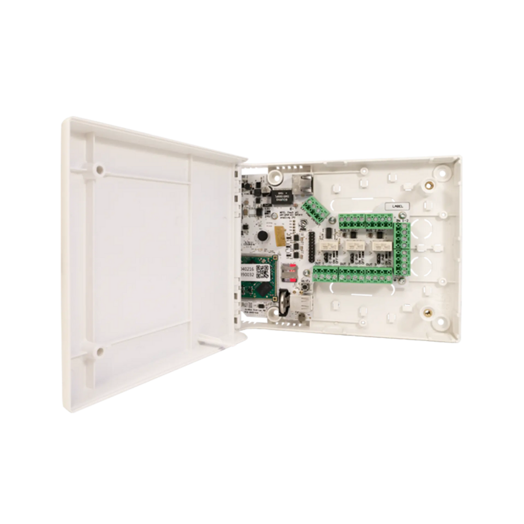 Enheten har två databussar och tre reläutgångar, vilket ger stor möjlighet till anpassning utifrån fastighetens behov. DCU-2 kräver varken lokal server eller programvaruinstallation och kommunicerar via nätverk, vilket gör installationen smidig och framtidssäker.