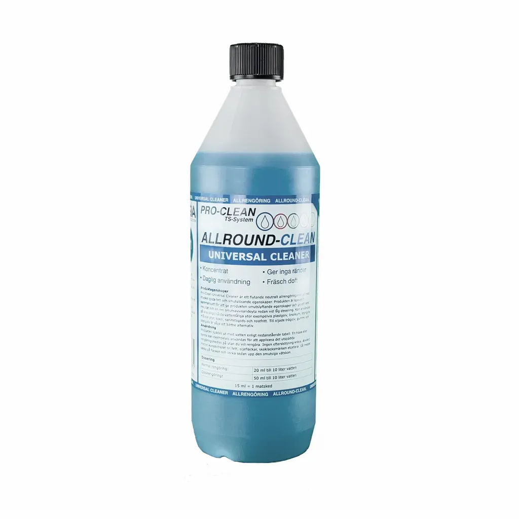 Universalrengöring Pro-Clean är ett neutralt och högpresterande allrengöringsmedel för professionell användning. Den är speciellt utvecklad för att effektivt lösa fett och smuts på ett brett spektrum av hårda ytor, som plastgolv, linoleum, rostfritt stål, sanitetsgods och kakel. Med sin smutsavvisande egenskap och fräscha doft lämnar den ytor rena och utan ränder – även vid låg dosering.