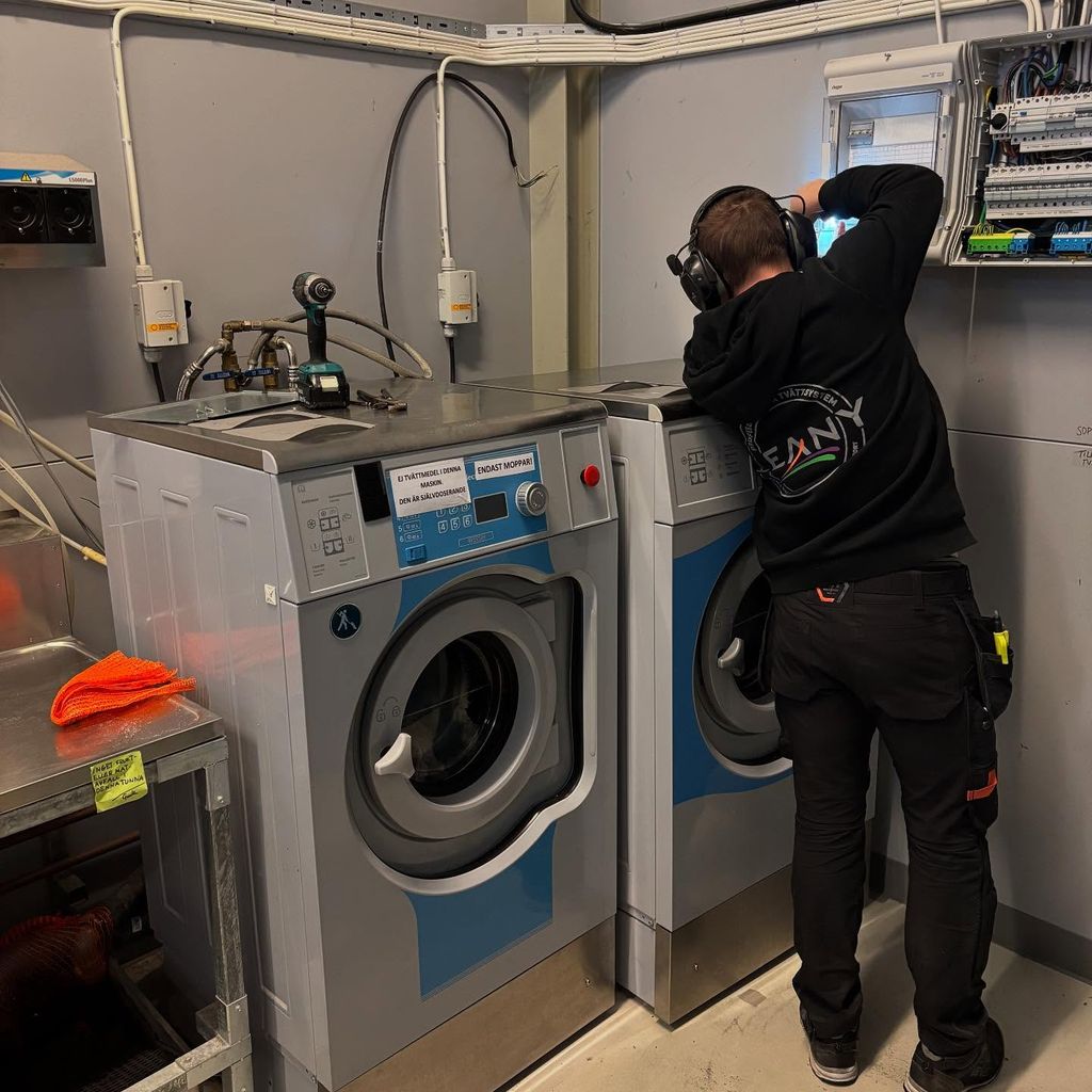 Service av doseringsutrustning avsett för upp till 2 st tvättmaskiner, rengöring, kontroll av funktioner, pumpslang- samt maskinslangbyte