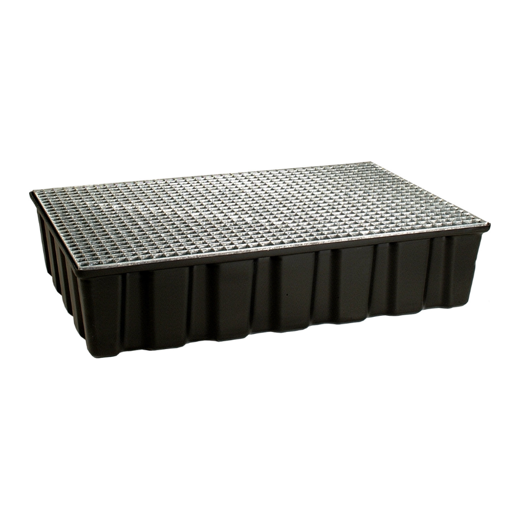 Skyddspallen 1220x820x270 mm med galvaniserat galler är en effektiv lösning för säker uppsamling av spillvätska från fat, dunkar och liknande behållare. Den är tillverkad i tålig plast och utrustad med ett galvaniserat galler som ger hög lastkapacitet och lång livslängd även i krävande miljöer.