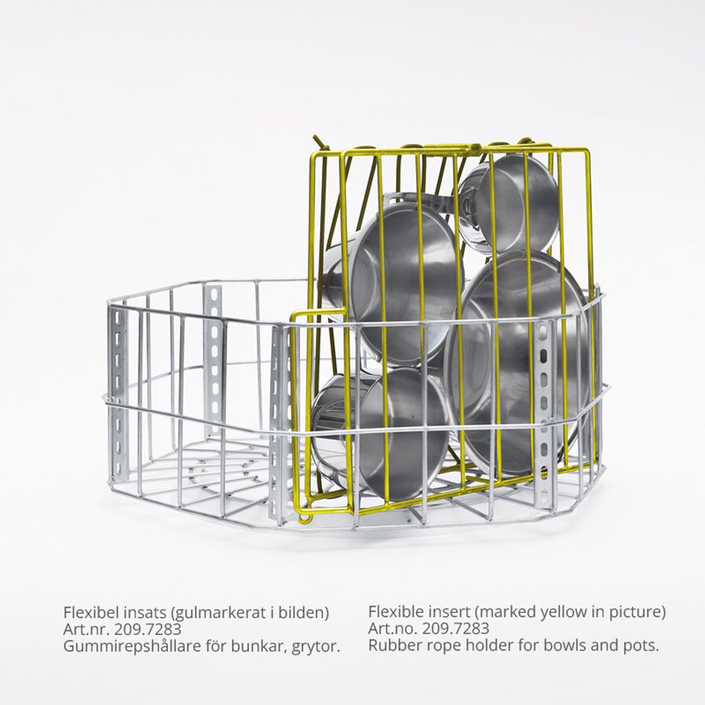 Genom den unika diskkorgen i rostfritt stål anpassad tilll WD-90 GR HC TOUCH uppnås en hög kapacitet vid diskning av kantiner, bakplåtar och grillgaller. Utöver korgen finns ett flertal smarta lösningar med tillbehör för att diska grytor, kastruller, slevar och vispar. Se bilder ovan.